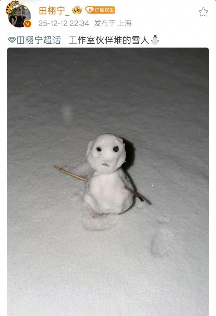 初雪,本就承载着东谈主们对好意思好的无限向往与憧憬。而这个雪东谈主,更是成为了连结田栩宁与众人情态的慈祥纽带。它让我们在直率生僻的冬日里,感受到了融融的暖意与无限的欢笑。