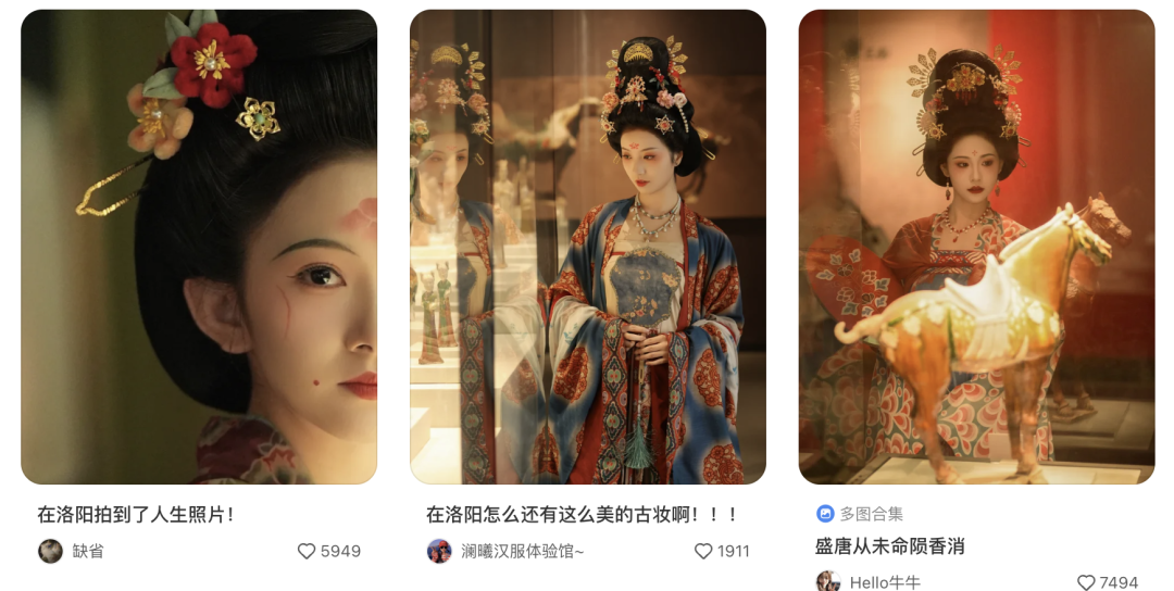 洛阳被戏称为世界最大的汉服拍摄地不是没特意思意思的。不换寂然唐代look,反而会在东谈主群中显得突兀。