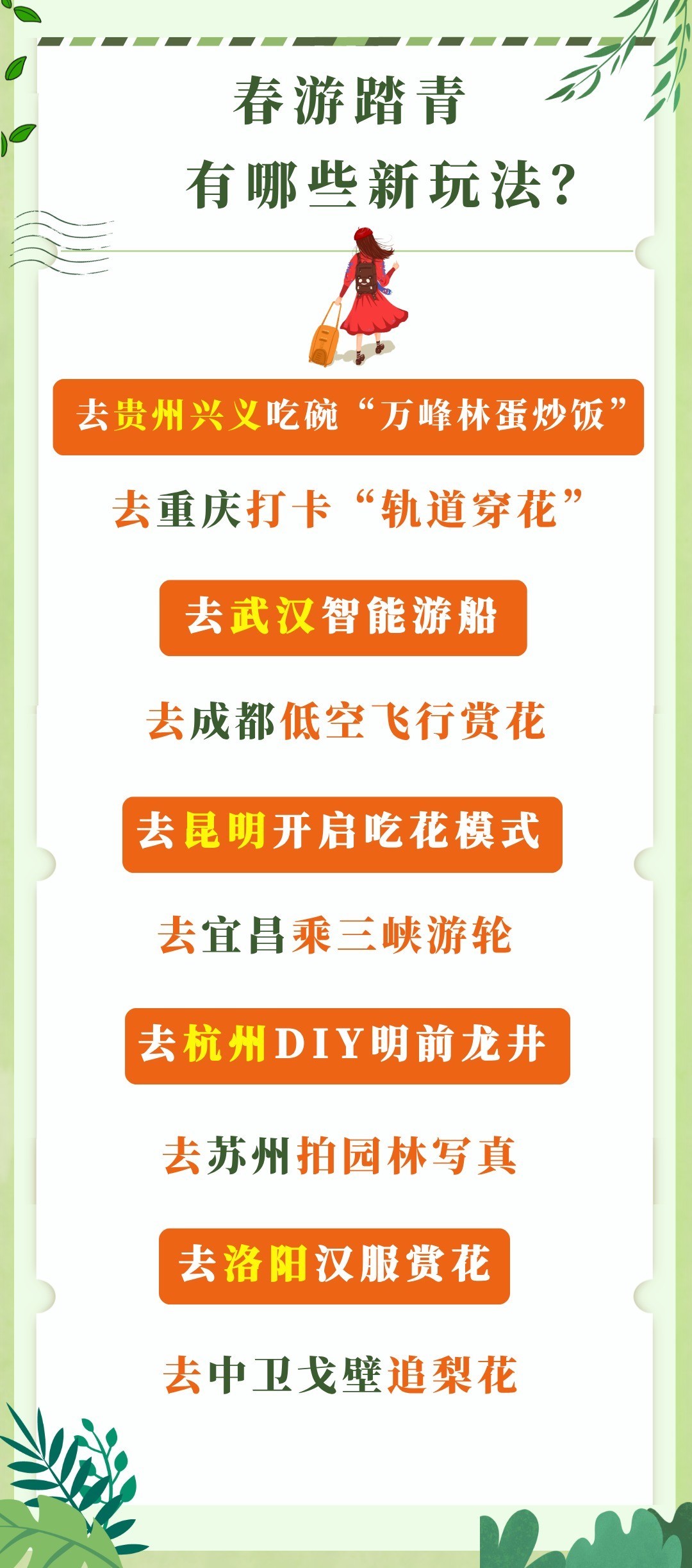 三月春意渐浓,春光愈好。时令尝鲜、赏花、踏青出游正那时。咱们推出“乐享春日现金凯发·k8国际app平台”系列,带各人看春色、品春意、识春趣。今天这一期聚焦春日出游舆图,给各人带来实用攻略,一齐追寻“诗和辽远”吧!