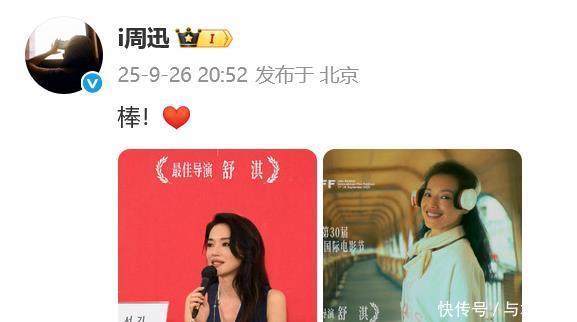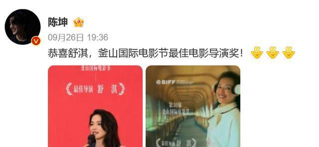 陈坤发文:“恭喜舒淇,釜山外洋电影节最好导演奖!”