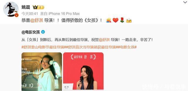 姚晨道贺:“恭喜舒淇导演!值得自豪的《女孩》!”