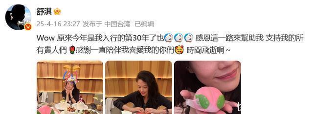 舒淇晒出多张和寿桃的合照写说念:“底本本年是我入行的第30年了,感德这一说念来匡助我、营救我的总共贵东说念主们,感谢一直随同我兴趣我的你们,时辰飞逝啊~”